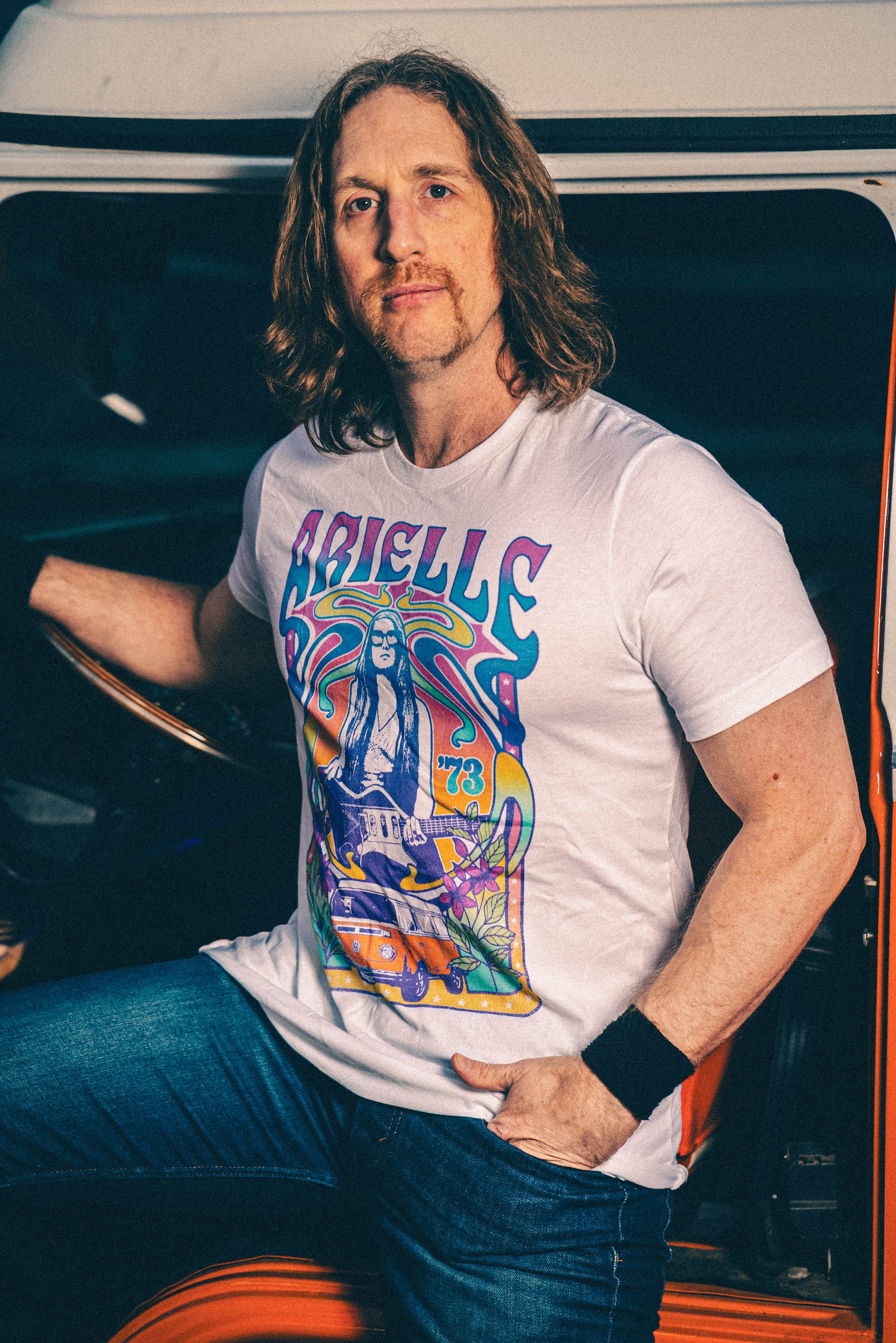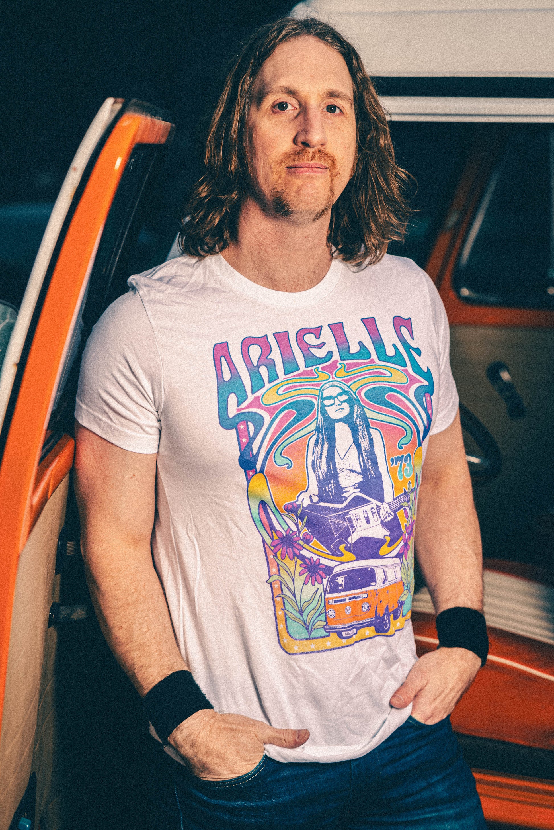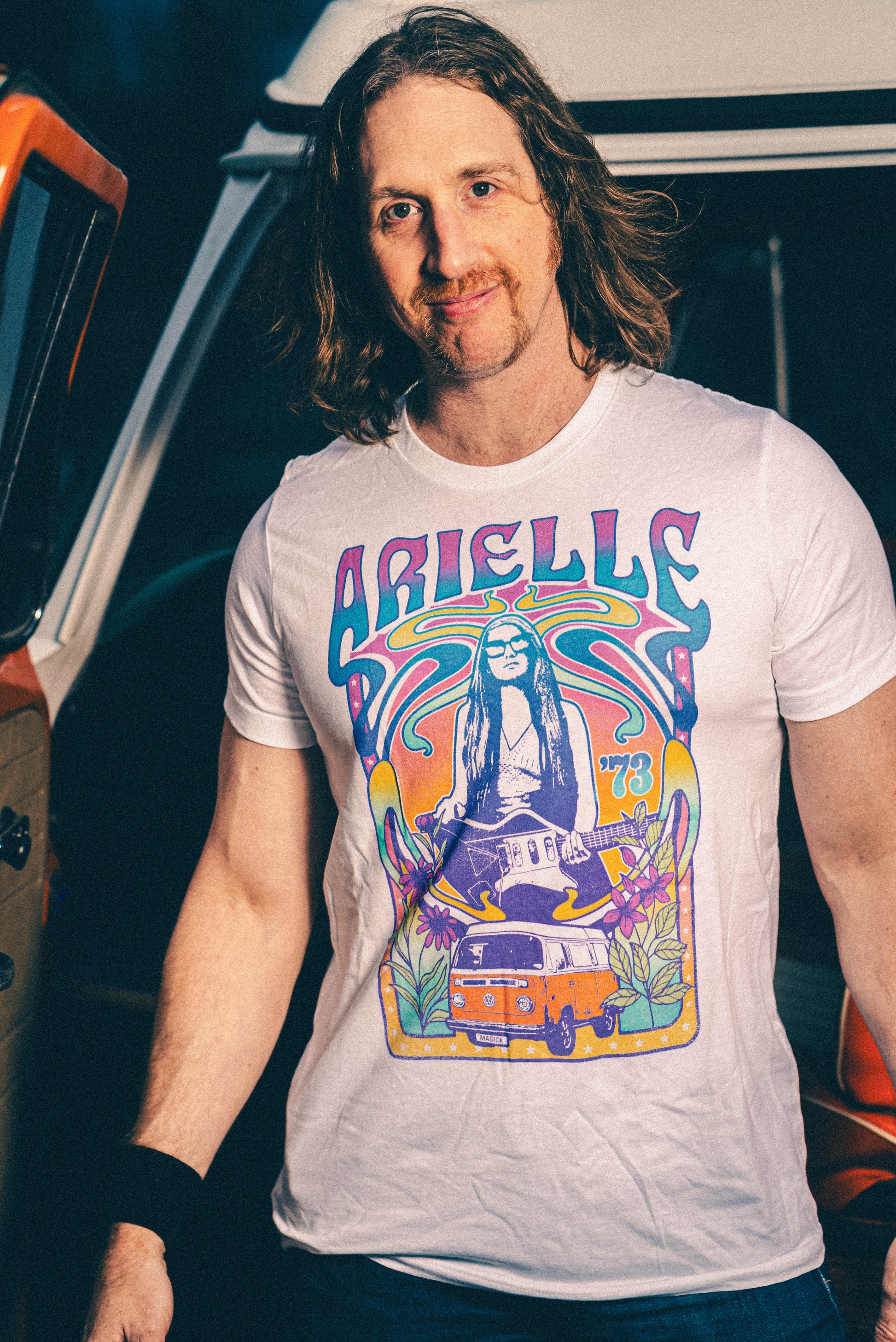 As tribute to the love of her 1973 Volkswagen Bus named Magick, this t-shirt will have you representing the album even before it comes out on April 20th, 2023.