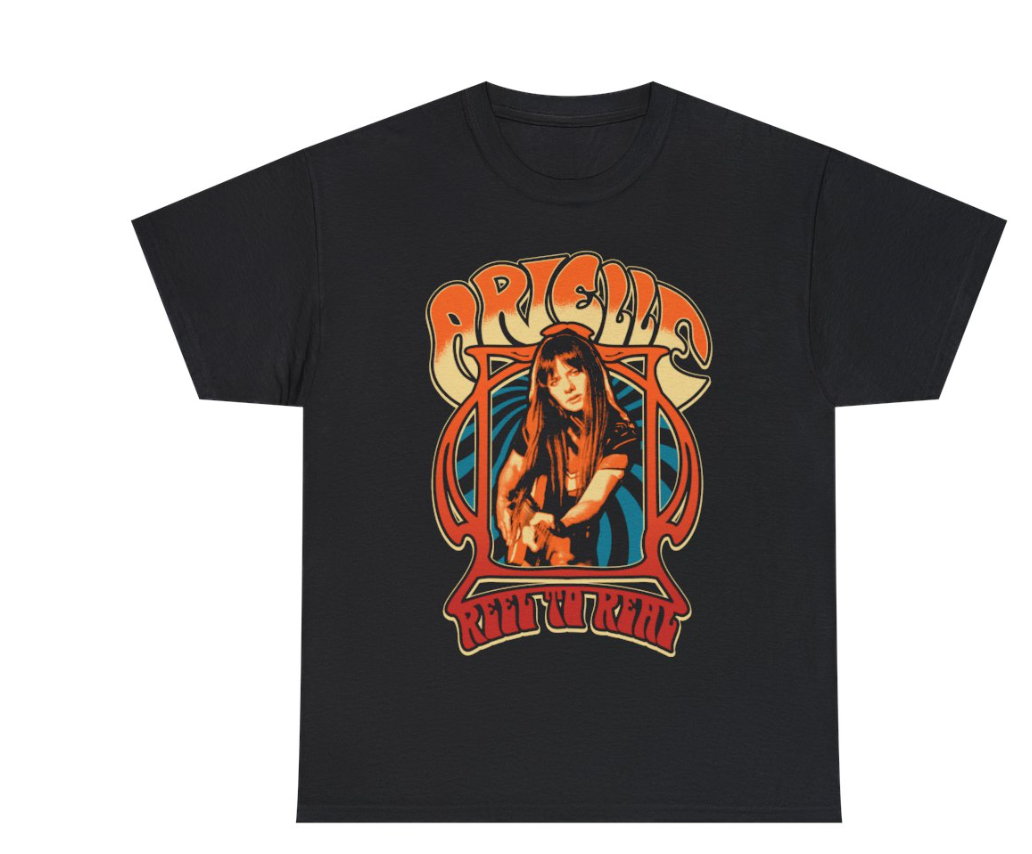 Introducing the "Timeless Riffs" Tee, a limited edition gem that's as unique and vibrant as the album it celebrates: REEL TO REAL. This isn't just another addition to your wardrobe; it's a statement piece that resonates with the warm, rich sounds of analog music and the captivating color palette of the 1960s.