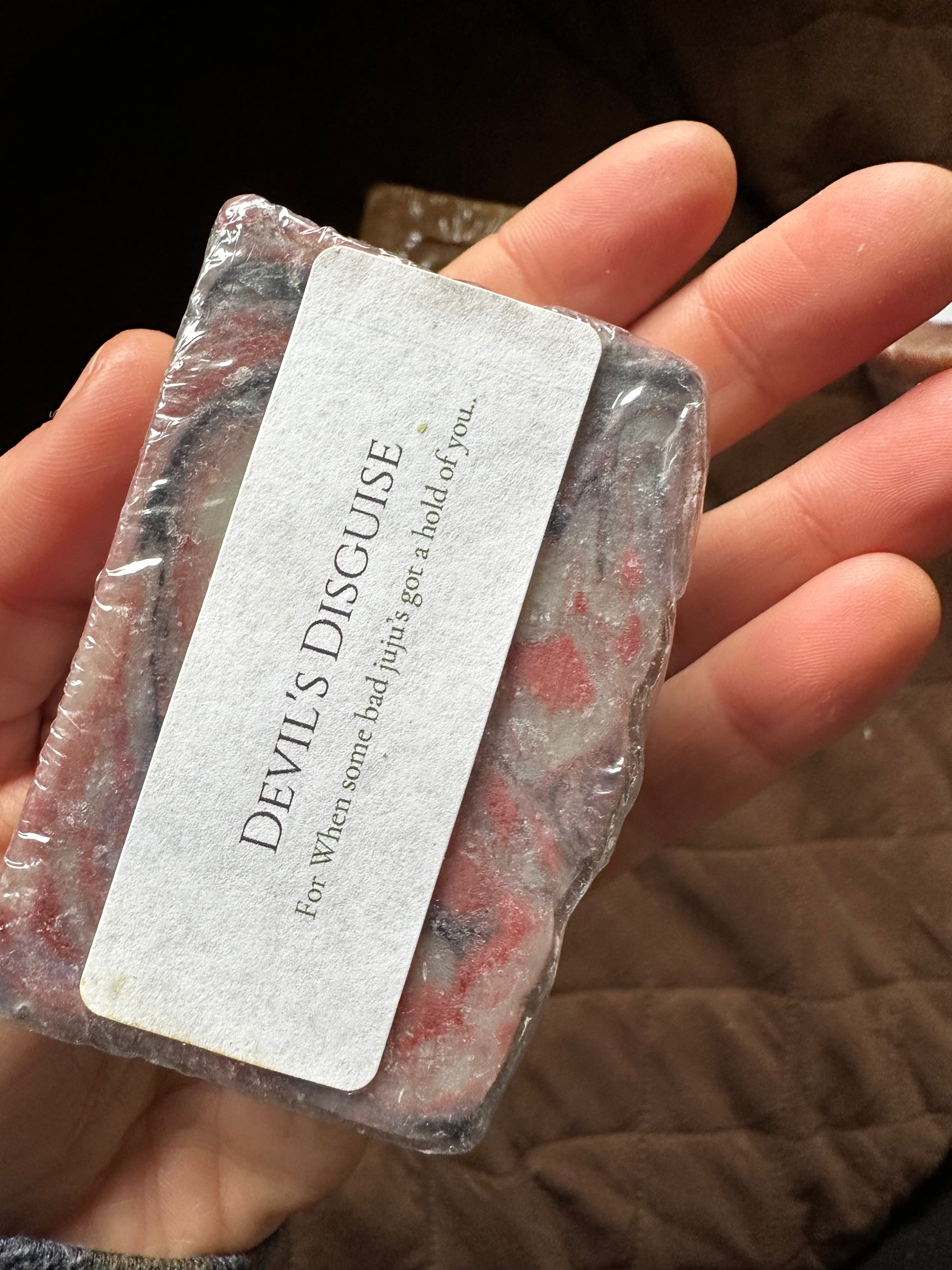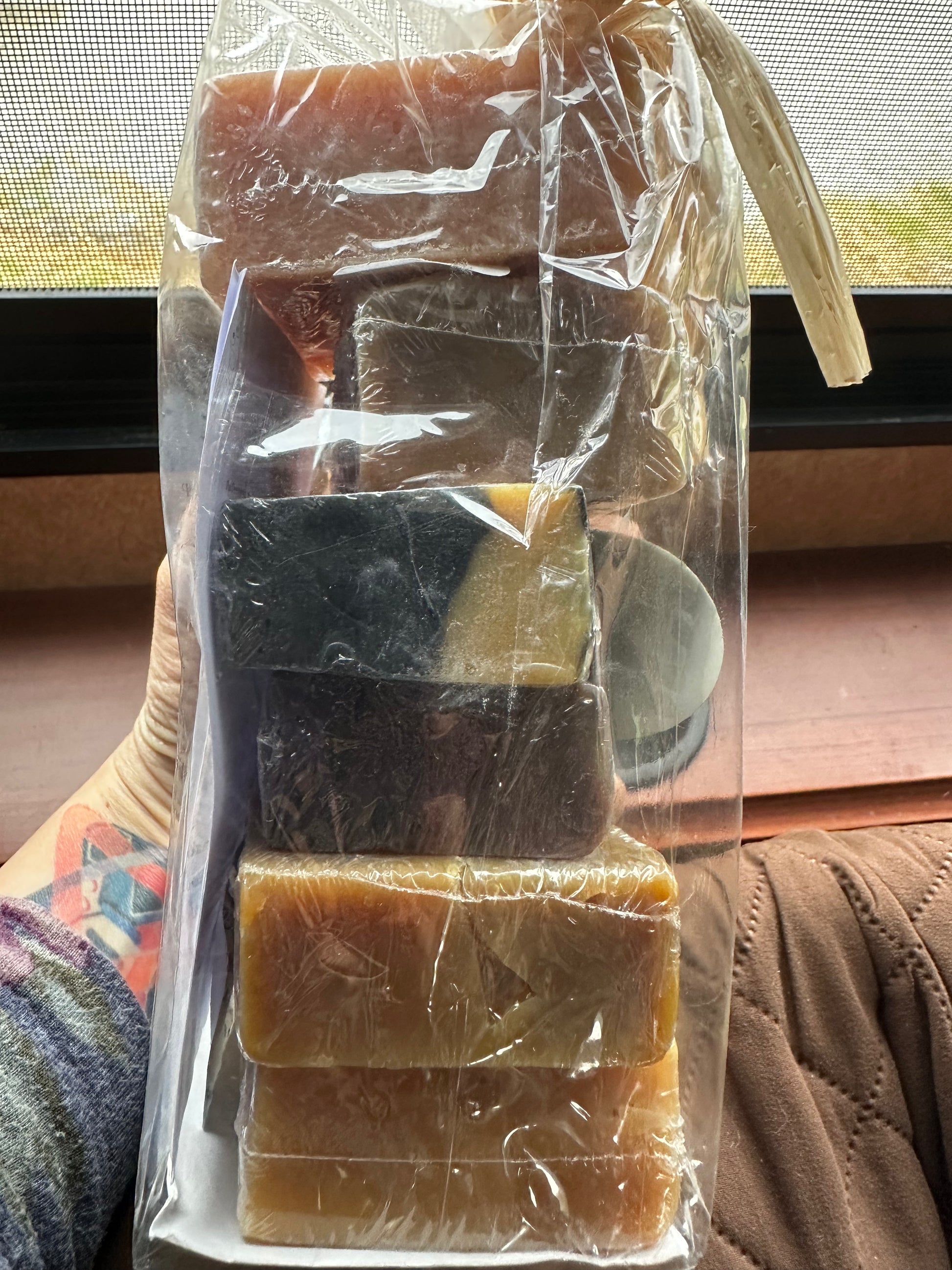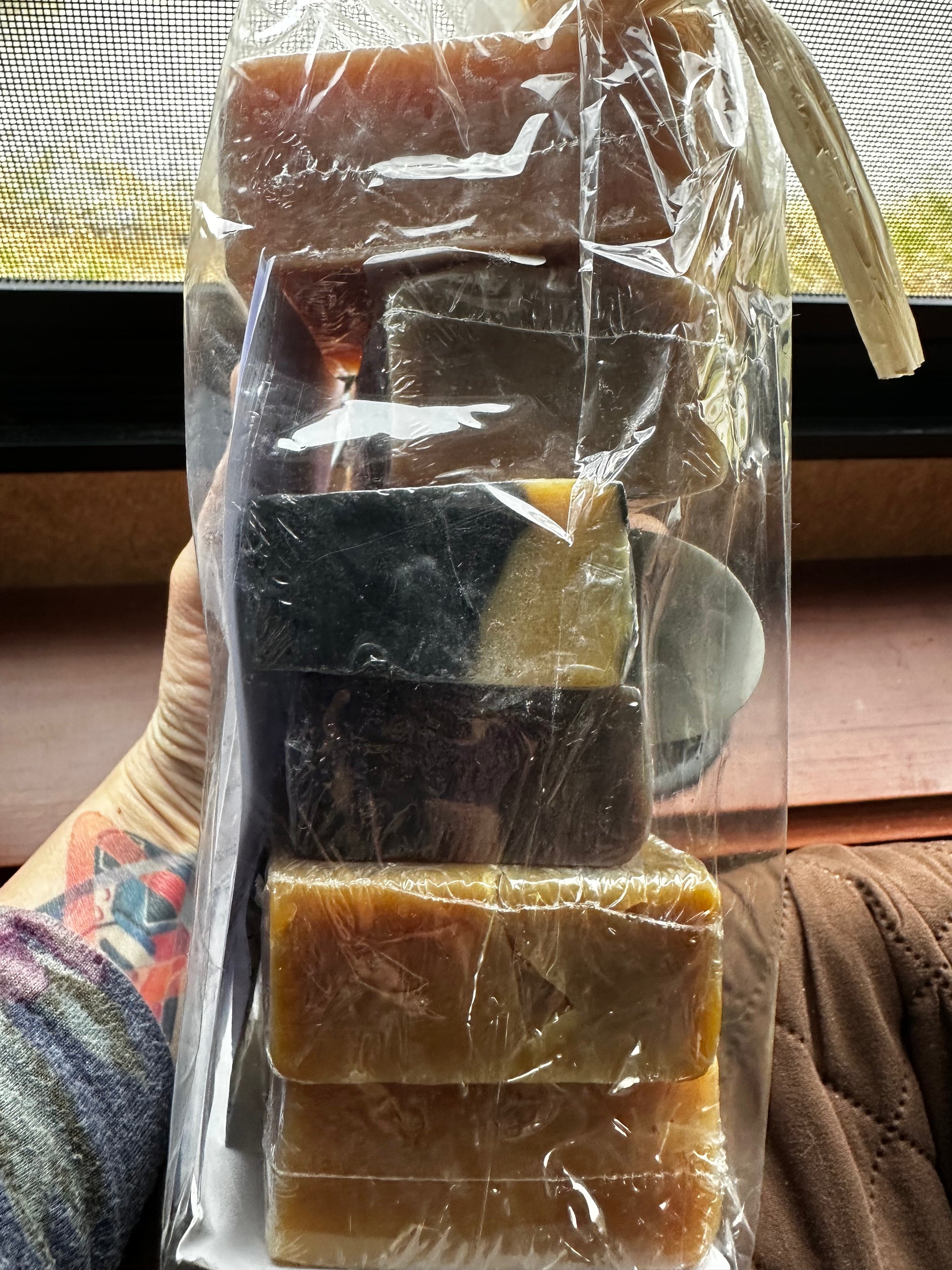 These are from about 4-5 years ago, but are still good, and ready to be used to freshen you (or your family pooch) up. Vegan, all natural, organic soaps that my friend & I made to go along with each soaps.